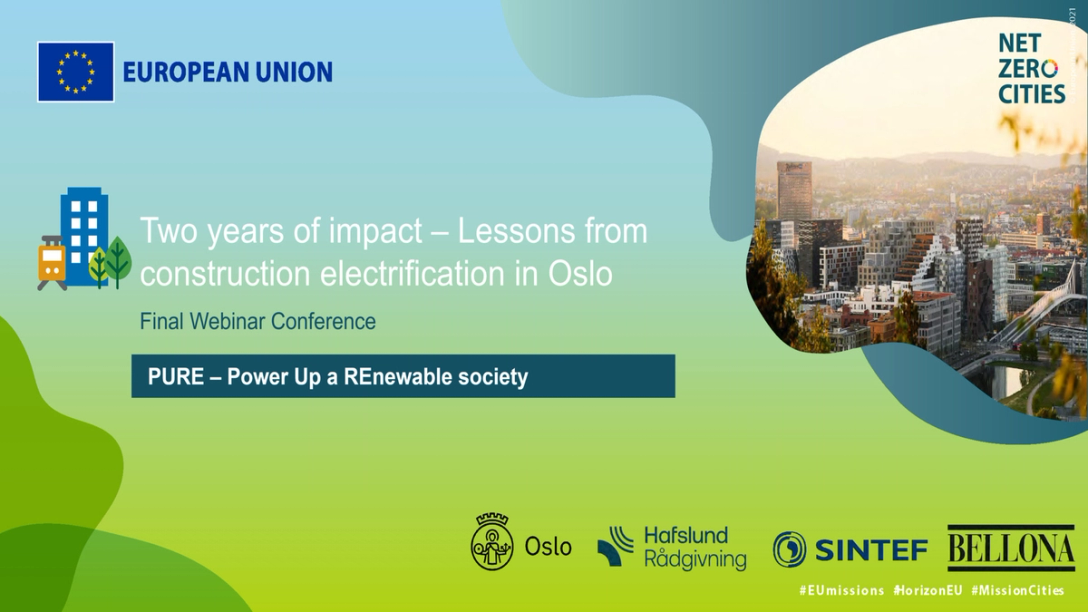 Her vil det deles resultater fra prosjektet Powering Up a Renewable Society, PURE. Prosjektet er i regi av NetZeroCities og ledes av Klimaetaten i Oslo kommune i gjennomføres i samarbeid med Hafslund Rådgivning, SINTEF og Bellona Europa.